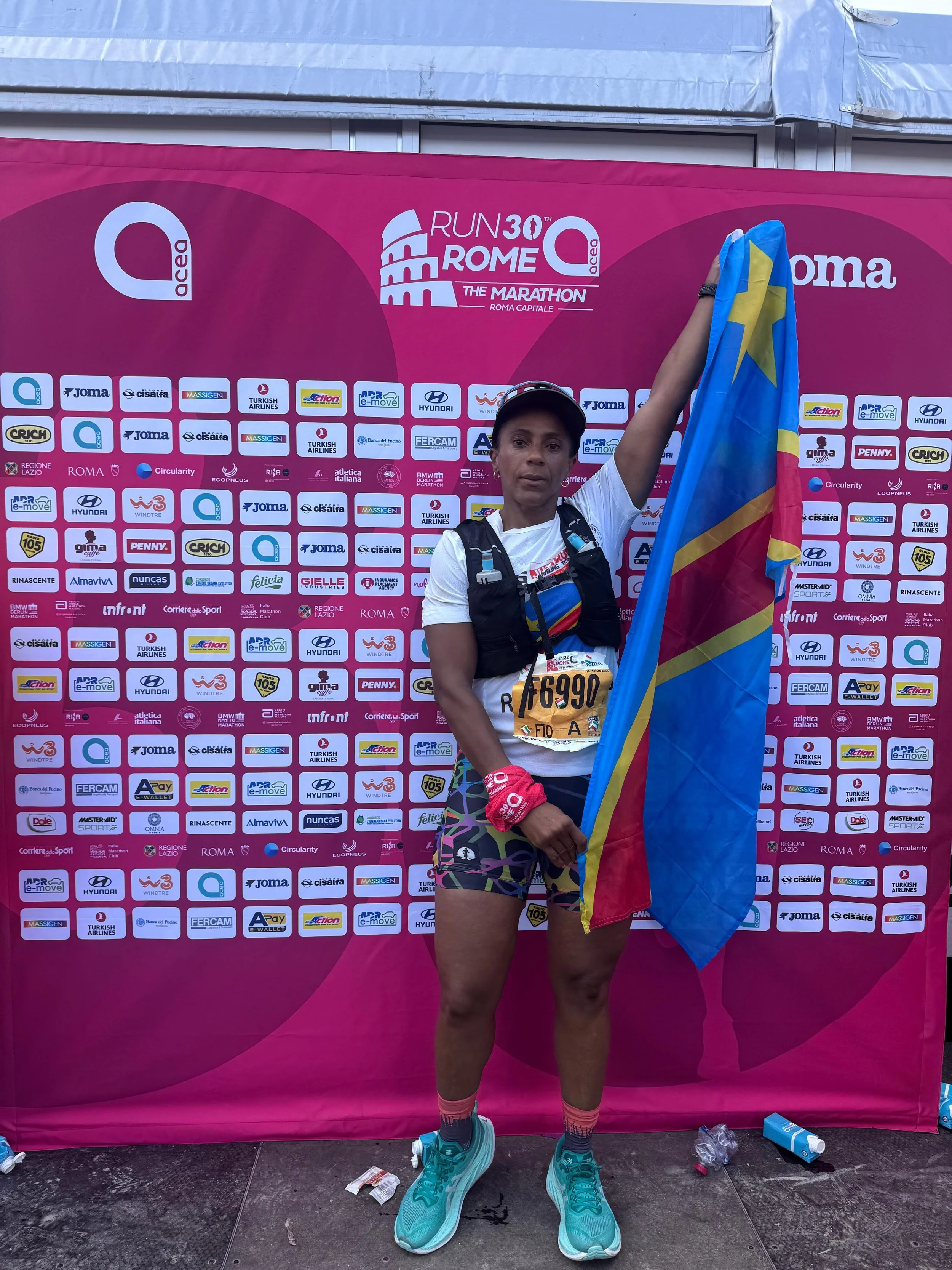 Reflecting on your recent marathon experience in Rome, how did that race influence your approach to training and preparation for the Congo River Marathon? What did it mean to represent your country and run with the DRC flag during the race?